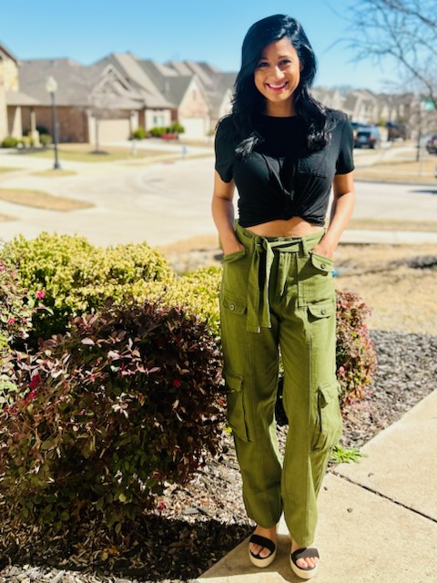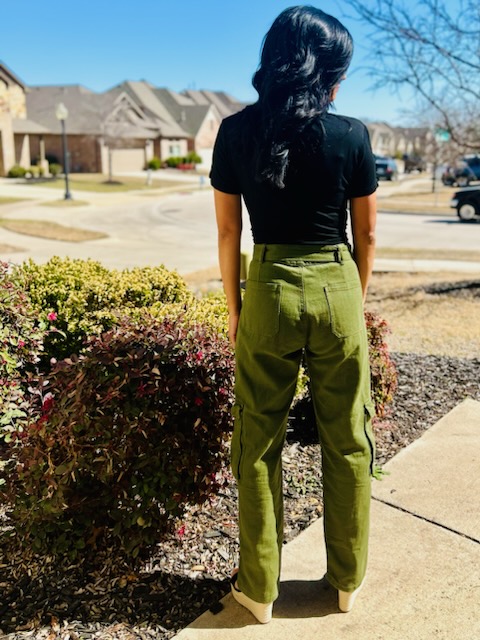 Stylish denim cargo pants for women. These cargo pants are meant to have a baggy fit with the lighter denim material.